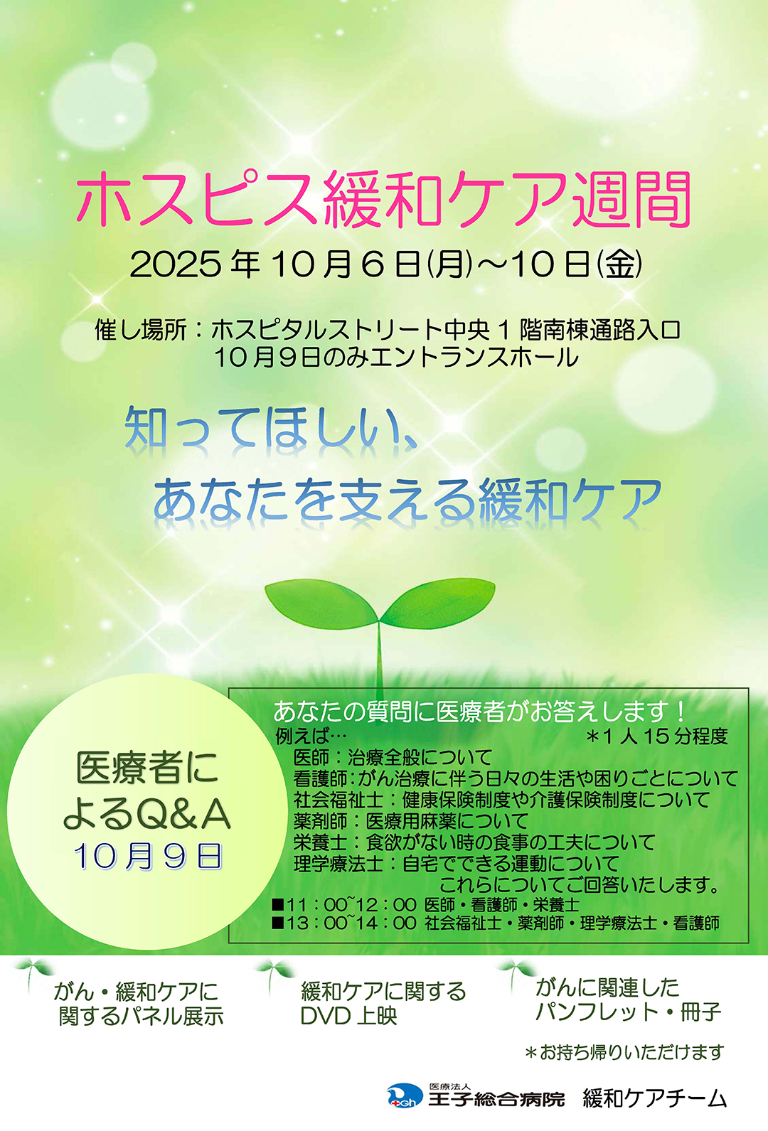 当院では、期間中に緩和ケアに関するパネル展示やDVD上映を行い、10月9日には医療者によるQ&Aコーナーを開催しました。